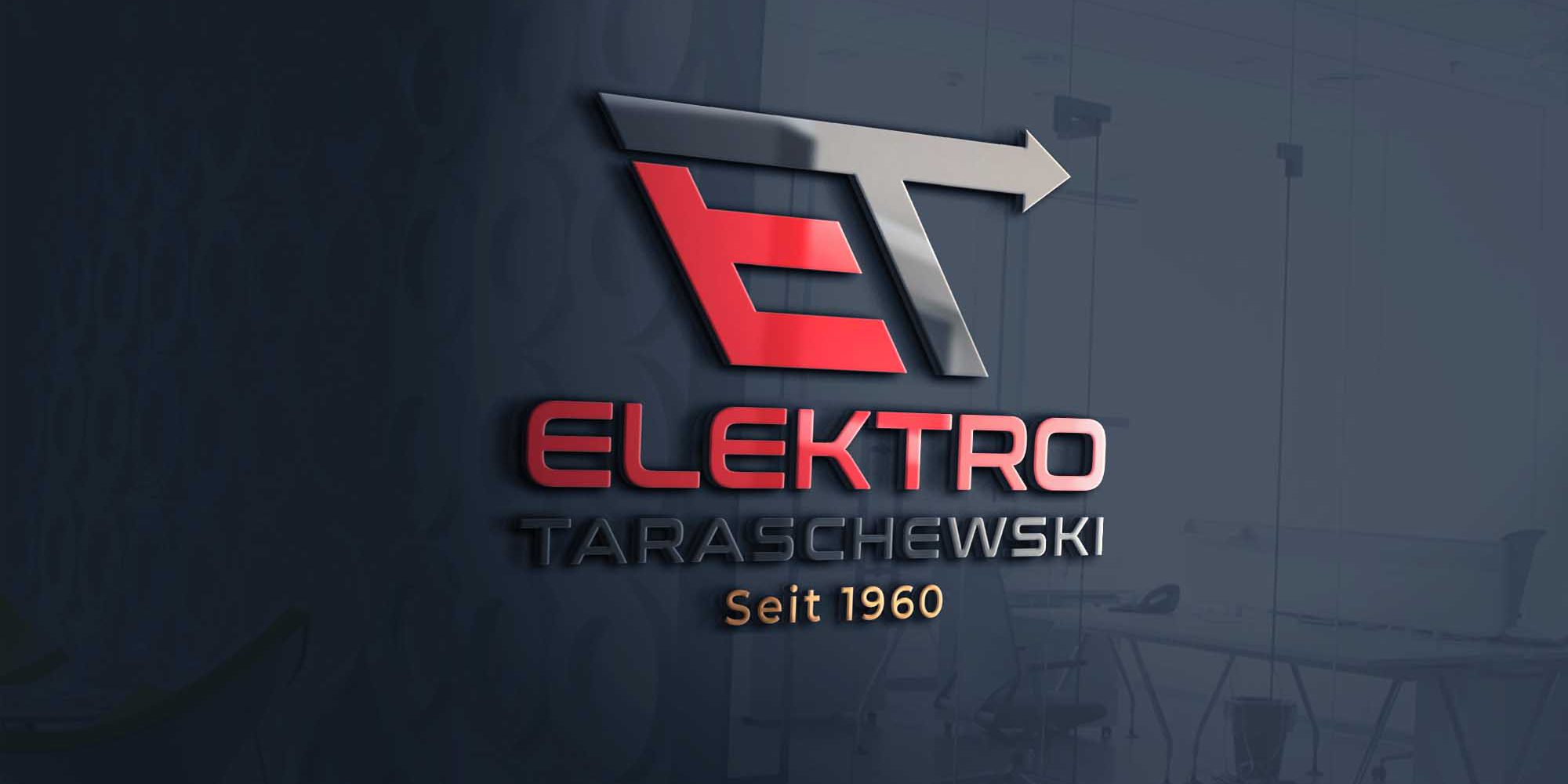 Seit 1960 tritt die Elektrotechnik Taraschewski mit Ihrem alteingesessenen Logo auf. Um diese Firmentradition beizubehalten, wurden die Farbkombinationen, sowie mehrere kleine Details in der neuen Kreation miteinbezogen.
